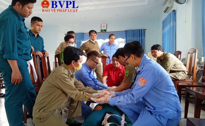 Các học viên được tập huấn sơ cứu các vết thương phần mềm, băng bó vết thương, sơ cứu gẫy xương, kỹ thuật vận chuyển nạn nhân an toàn.