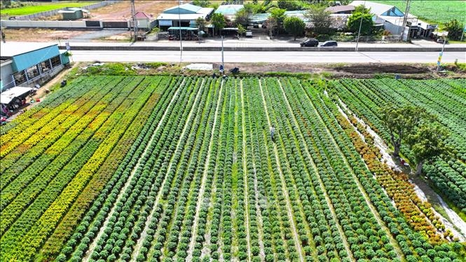 Cánh đồng hoa Tết tại xã An Cơ, huyện Châu Thành, tỉnh Tây Ninh với hơn 30 nghìn chậu hoa các loại, chuẩn bị cung ứng ra thị trường.