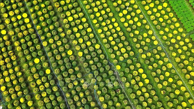 Vườn hoa ở xã Truông Mít, huyện Dương Minh Châu với hơn 20 nghìn chậu hoa vạn thọ chuẩn bị phục vụ thị trường hoa Tết Ất Tỵ 2025.