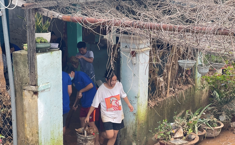 Thành đoàn Đà Nẵng đã triển khai các đội hình thanh niên tình nguyện tại 56 phường, xã; đồng loạt ra quân giúp người dân khắc phục ảnh hưởng của mưa lũ. (Ảnh: TĐ)