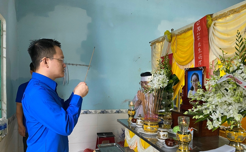 Lãnh đạo Thành Đoàn Đà Nẵng đã đến thăm, viếng hương, hỗ trợ gia đình các em Võ Huỳnh Nguyên Thảo (SN 2006) và Hồ Minh Phát (SN 2012, trú tại phường Hoà Khánh Nam quận Liên Chiểu, TP Đà Nẵng), không may qua đời vì bị nước lũ cuốn trôi. Tại nơi đến thăm, Lãnh đạo Thành Đoàn đã gửi những lời chia buồn sâu sắc, đồng thời động viên các gia đình sớm vượt qua đau thương, mất mát để ổn định cuộc sống. (Ảnh: TĐ)
