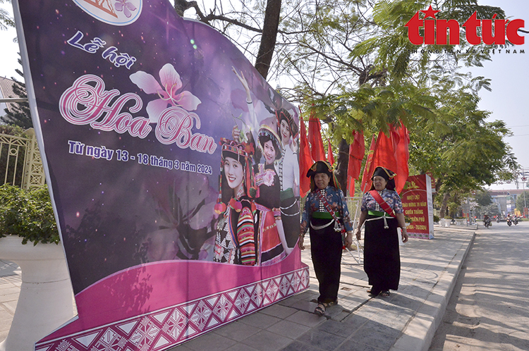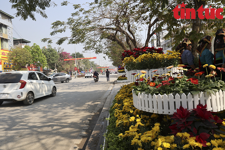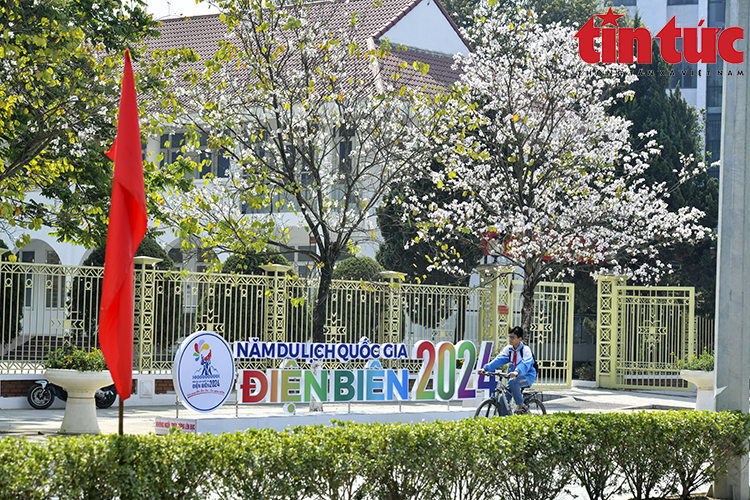 Đường phố TP Điện Biên Phủ đang rợp trời sắc màu cờ hoa, chào mừng Năm Du lịch Quốc gia, Lễ hội Hoa Ban.