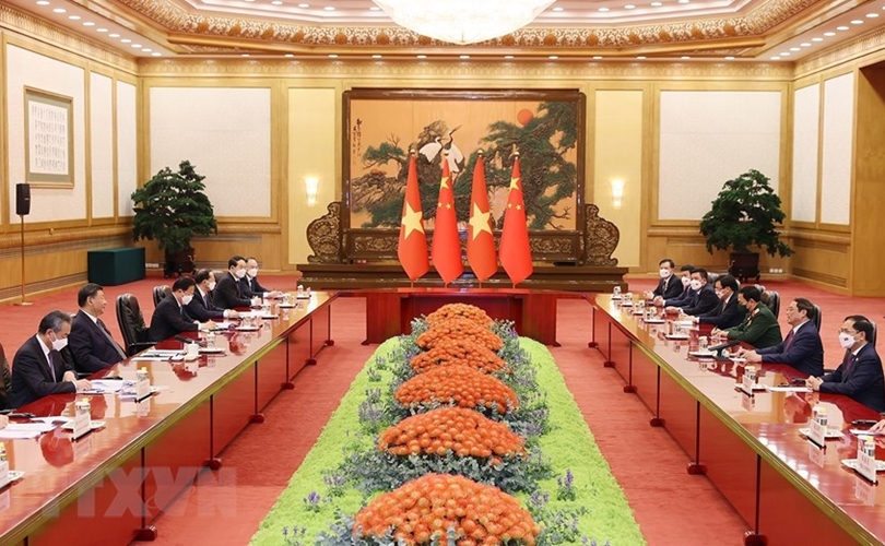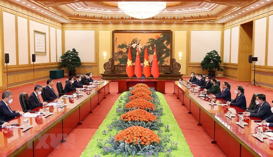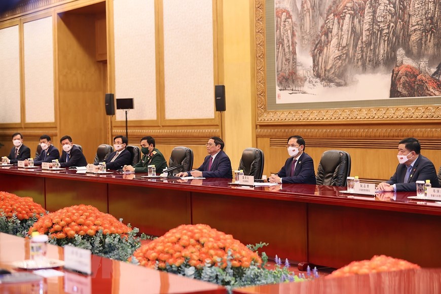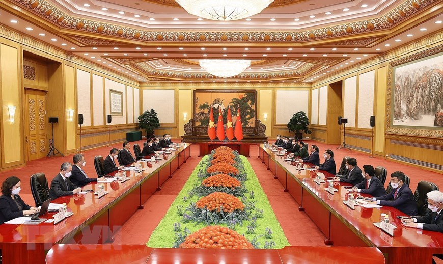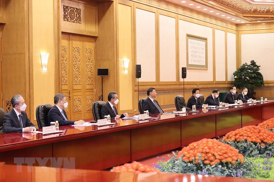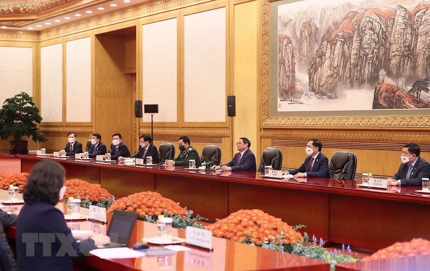 Thủ tướng Phạm Minh Chính chúc đất nước và nhân dân Trung Quốc dưới sự lãnh đạo sáng suốt của Trung ương Đảng Cộng sản Trung Quốc do ông Tập Cận Bình làm hạt nhân, sẽ thực hiện thắng lợi mục tiêu “100 năm thứ hai,” đưa Trung Quốc trở thành cường quốc xã hội chủ nghĩa hiện đại, giàu mạnh, dân chủ, văn minh, hài hòa và tươi đẹp. (Ảnh: Dương Giang/TTXVN)