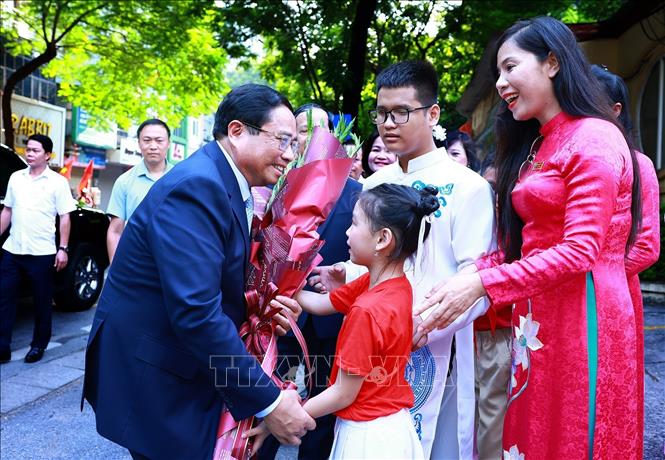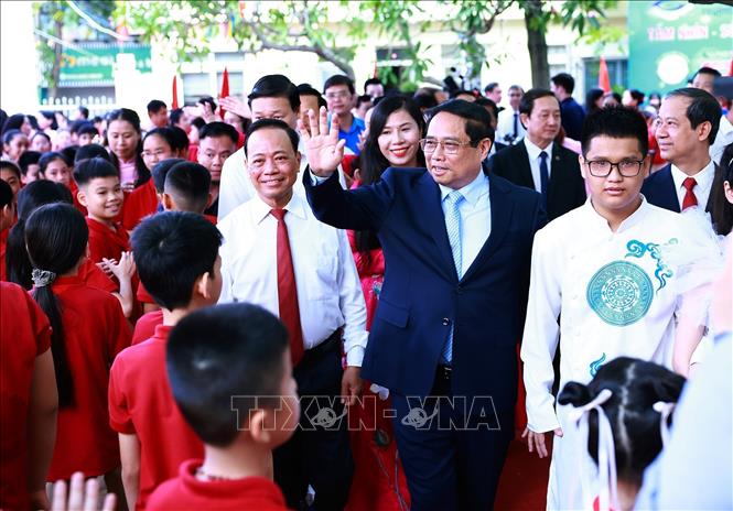 Sáng 5/9/2024, Thủ tướng Phạm Minh Chính dự Lễ khai giảng năm học 2024-2025 tại Trường Phổ thông cơ sở Nguyễn Đình Chiểu, Hà Nội.