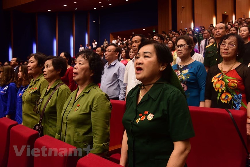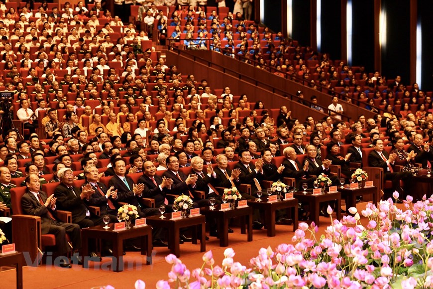 Lễ Kỷ niệm có khoảng 2.000 đại biểu gồm các vị lãnh đạo, nguyên lãnh đạo Đảng, Nhà nước, Ủy ban Trung ương Mặt trận Tổ quốc Việt Nam; các Ủy viên Ban Chấp hành Trung ương Đảng công tác tại Hà Nội; đại diện lãnh đạo các Ủy ban Thường vụ Quốc hội, các ban, bộ, ngành, đoàn thể trung ương; đại biểu các tỉnh, thành phố; trưởng các cơ quan ngoại giao và tổ chức quốc tế tại Hà Nội…(Ảnh: PV/Vietnam+)