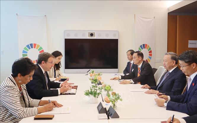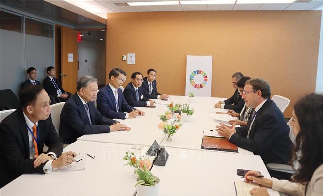 Nhân dịp tham dự Đại hội đồng Liên hợp quốc Khóa 79 và làm việc tại Hoa Kỳ, chiều 24/9/2024, giờ địa phương (sáng 25/9, giờ Việt Nam), tại thành phố New York, Tổng Bí thư, Chủ tịch nước Tô Lâm gặp Tổng Giám đốc Chương trình Phát triển Liên hợp quốc (UNDP) Achim Steiner và Chủ tịch Ủy ban châu Âu Ursula von der Leyen.