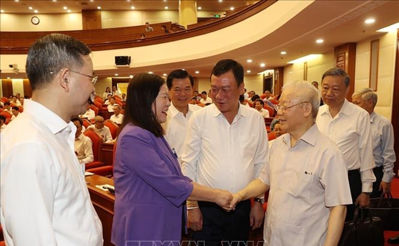 Tổng Bí thư Nguyễn Phú Trọng với các đại biểu dự hội nghị. Ảnh: Trí Dũng/TTXVN