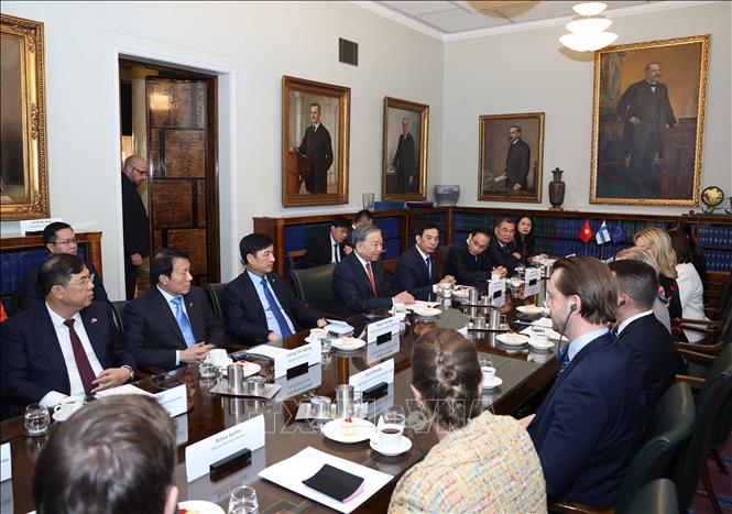 Trong chương trình chuyến thăm chính thức Phần Lan, sáng 22/10/2025 (theo giờ địa phương), tại Thủ đô Helsinki, Tổng Bí thư Tô Lâm gặp Phó Chủ tịch thứ nhất Quốc hội Phần Lan Paula Risikko.