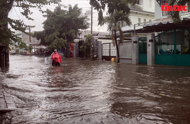 Đường Quốc Hương (thành phố Thủ Đức) đến hơn 18 giờ vẫn còn ngập sâu.