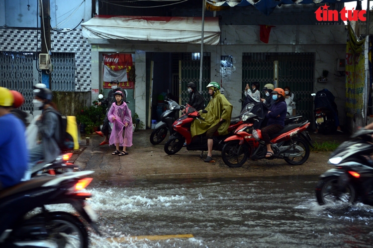 Đường Phan Anh (quận Bình Tân giáp quận Tân Phú) bị ngập sâu khiến giao thông gặp nhiều khó khăn.