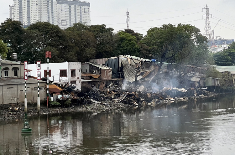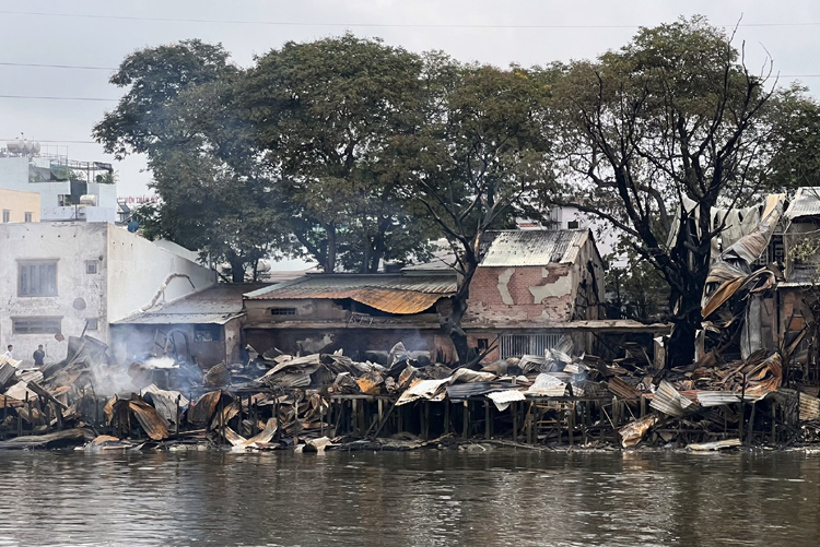 Đến sáng ngày 2/4, lực lượng chức năng Quận 8 (TP Hồ Chí Minh) vẫn đang phong tỏa hiện trường để làm rõ nguyên nhân vụ hỏa hoạn lớn tại dãy nhà sát kênh Tàu Hủ.