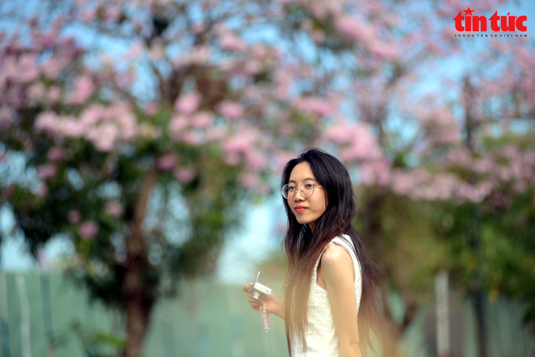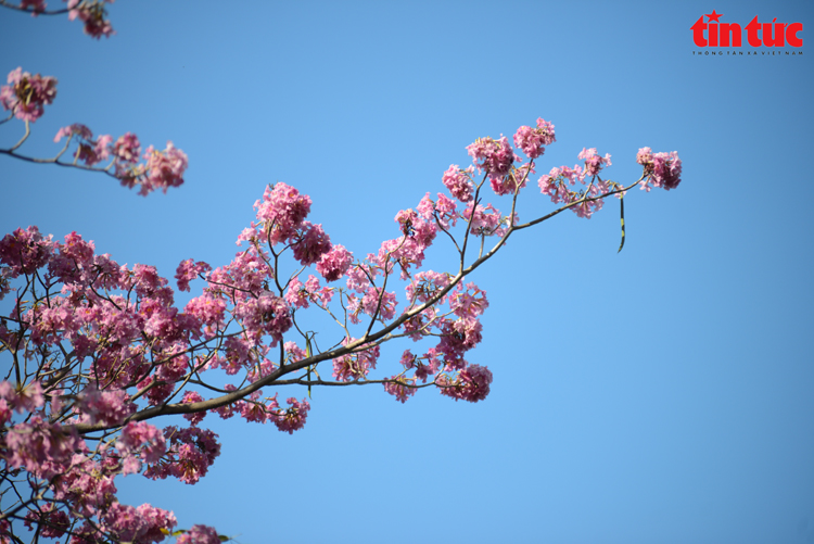 Những ngày đầu tháng 3/2025, hoa kèn hồng đồng loạt bung nở trên nhiều tuyến đường như Hàm Nghi, Điện Biên Phủ, Võ Văn Kiệt, Tô Hiệu... Màu hồng phớt dịu dàng của loài hoa này phủ lên các tán cây ven đường, tạo nên khung cảnh lãng mạn, thu hút nhiều người dừng chân chiêm ngưỡng, chụp ảnh.