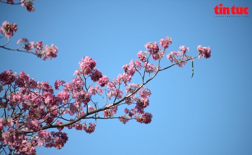 Những cây hoa kèn hồng bung nở trong tiết thời tháng 3.