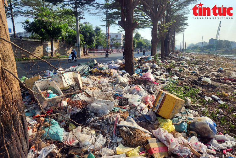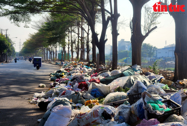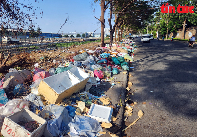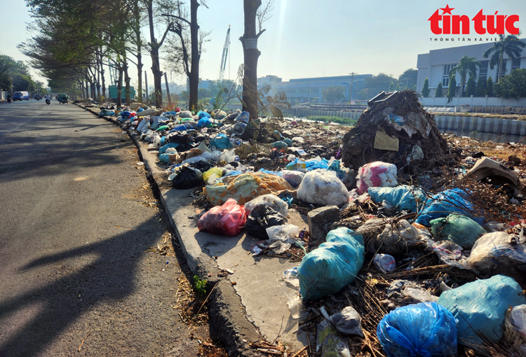 Hàng tấn rác thải chất đống thành hàng dài hơn trăm mét trên đường CN1 (Khu công nghiệp Tân Bình, phường Tây Thạnh, quận Tân Phú, TP Hồ Chí Minh) bốc mùi hôi thối, gây ô nhiễm môi trường và mất mỹ quan đô thị.