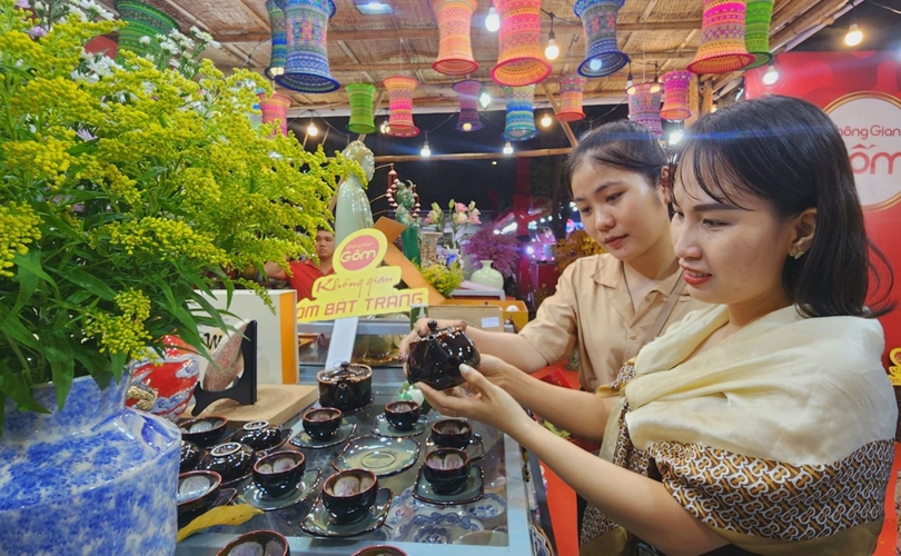 Không gian trưng bày các sản phẩm gốm sứ Việt Nam tại Lễ hội Tết Việt 2024.