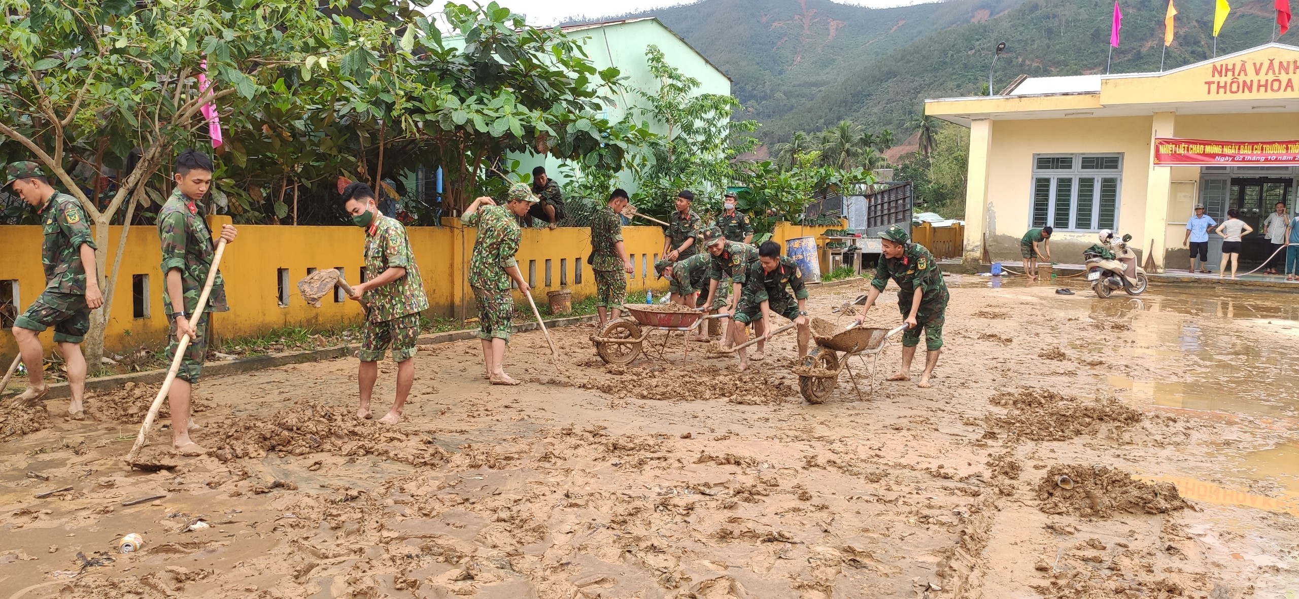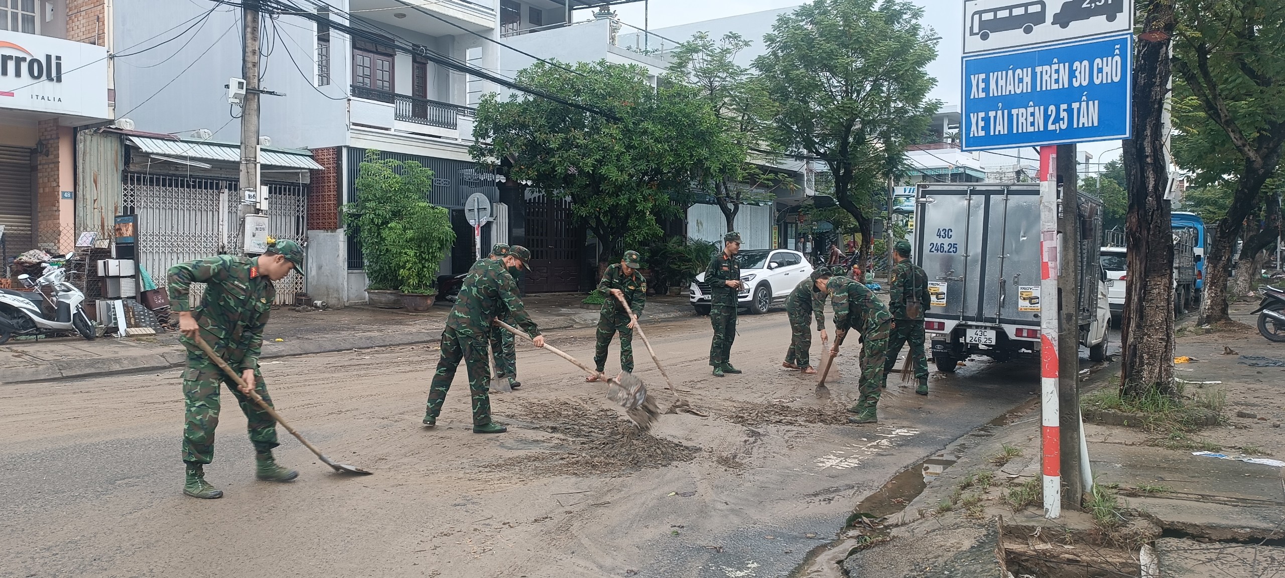 Theo Sở Giáo dục và Đào tạo TP Đà Nẵng, từ ngày 17/10, học sinh các cấp sẽ đi học trở lại. Tuy nhiên, tình hình thực tế thì 1 số trường học tại các quận/huyện như Hòa Vang, Thanh Khê, Liên Chiểu do bị ngập quá nặng nên chưa thể khắc phục nhanh chóng ngay được. Thậm chí, hiện, 1 số điểm trường vẫn còn đang bị ngập nước. Lực lượng quân đội đang chờ nước rút để hỗ trợ khắc phục nên học sinh ở các điểm này chưa thể đến trường học. (Ảnh: TA)