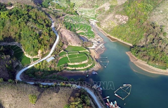 Đập thủy điện Lai Châu hoàn thành đã tạo ra một lòng hồ rộng lớn với phong cảnh sơn thủy hữu tình.