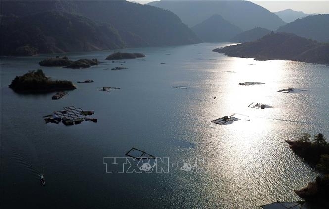 Ngoài vẻ đẹp hoang sơ hùng vĩ, lòng hồ còn có nhiều tiểm năng để phát triển nuôi cá lồng đem lại kinh tế cho người dân.