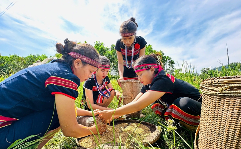 Những cô gái miền núi ở Quảng Nam trong vụ mùa bội thu lúa rẫy.