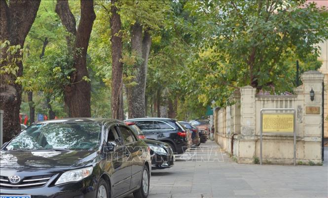Dọc phố Lý Thái Tổ, xe ô tô đỗ đầy vỉa hè (ảnh chụp chiều 13/3). Ảnh: Quỳnh Anh/TTXVN