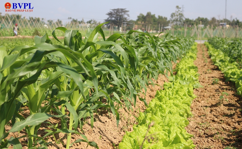 Ngoài cây trồng chủ lực là mướp, khổ qua, đậu cove, dưa leo, bắp,... bà con nông dân còn trồng xen canh các loại rau ngắn ngày như: cải, xà lách,… Những luống rau đã phủ xanh Bàu Tròn.