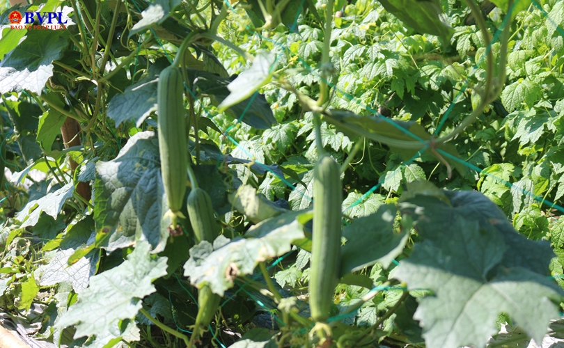 Nhờ được chăm bón tốt nên những ruộng mướp trĩu trái.