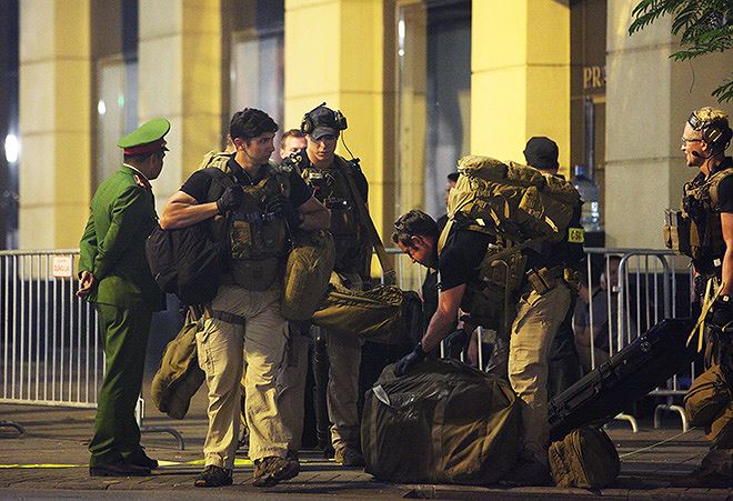 Lực lượng mật vụ chống bắn tỉa làm việc ở sân bay Nội Bài. Ảnh soha.vn