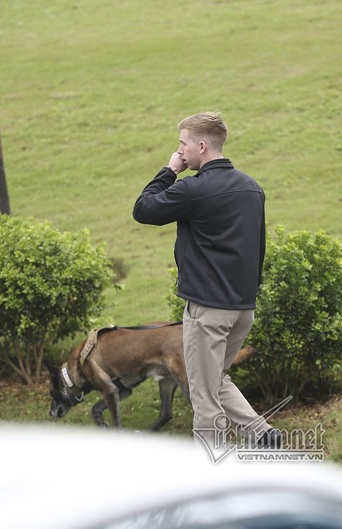 Chú chó nghiệp vụ Mỹ thực hiện nhiệm vụ kiểm tra kỹ xung quanh khách sạn Marriott - nơi Tổng thống Donald Trump ở trong 2 ngày (27- 28/2) để tham dự hội nghị thượng đỉnh Mỹ - Triều. Ảnh vnn