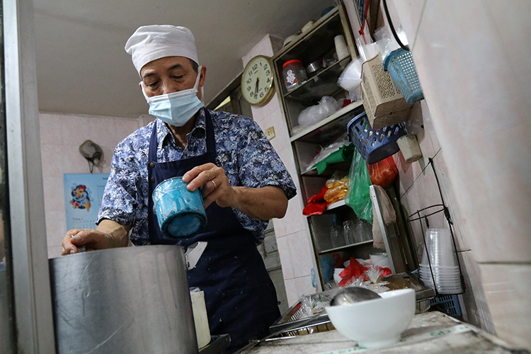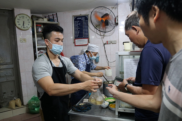 Từ sáng sớm, ông Phạm Xuân Thanh, chủ quán, đã phải luôn tay phục vụ khách.