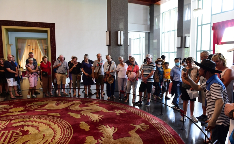 Du khách tham quan Phòng khánh tiết, nơi từng tổ chức các cuộc họp, chiêu đãi và lễ ra mắt nội các của Chính quyền Việt Nam Cộng hòa.