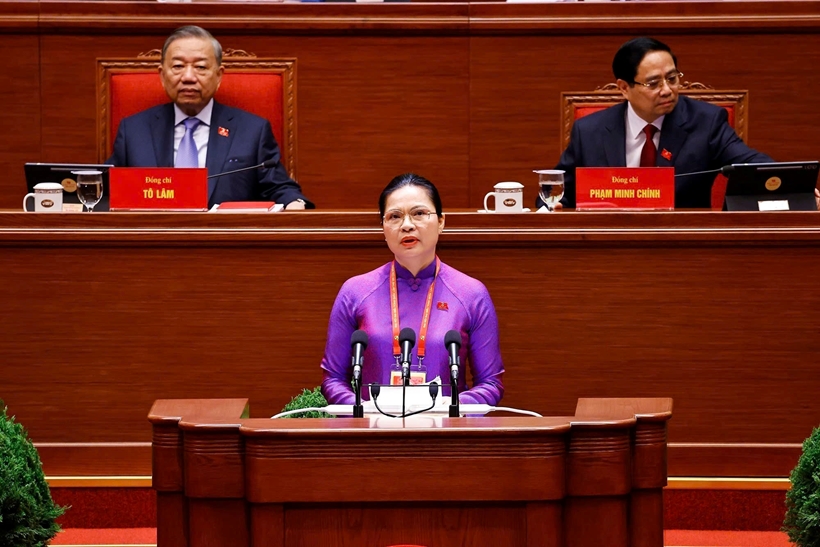 | Đồng chí Hà Thị Nga, Ủy viên Trung ương Đảng, Phó Bí thư Thường trực Đảng ủy Mặt trận Tổ quốc, các đoàn thể Trung ương, Phó Chủ tịch, Tổng Thư ký Ủy ban Trung ương Mặt trận Tổ quốc Việt Nam, tham luận về vấn đề “Phát huy sức mạnh đoàn kết toàn dân tộc - nền tảng, động lực quan trọng thực hiện thắng lợi các mục tiêu phát triển đất nước trong kỷ nguyên mới”. Ảnh: daihoidangtoanquoc.vn |