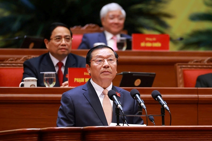 | Đại tướng Lương Tam Quang, Ủy viên Bộ Chính trị, Bí thư Đảng ủy Công an Trung ương, Bộ trưởng Bộ Công an, tham luận về vấn đề “Công tác công an thực hiện 3 mục tiêu chiến lược của Đảng: Hòa bình, ổn định - phát triển chất lượng cao - hạnh phúc của Nhân dân”. Ảnh: daihoidangtoanquoc.vn |