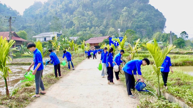 | Đoàn Thanh niên xã Việt Lâm chăm sóc cây xanh, chỉnh trang cảnh quan khu dân cư, góp phần xây dựng môi trường xanh – sạch – đẹp. |