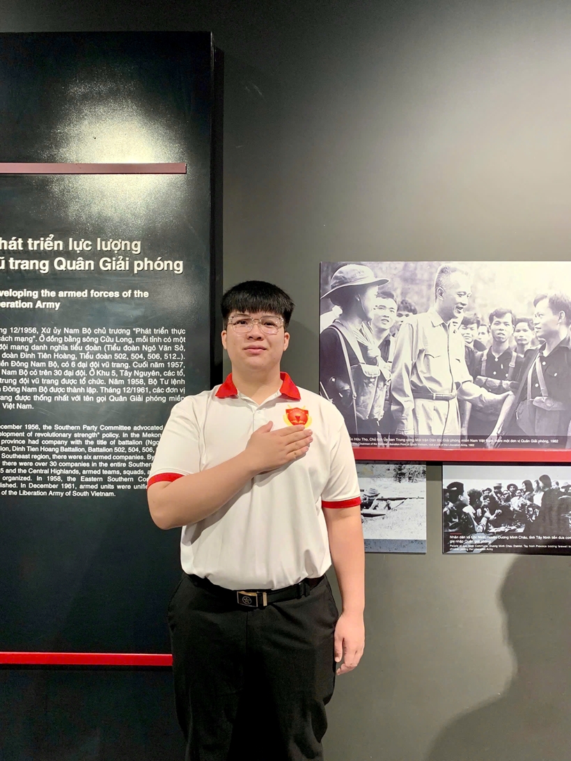 | Sinh viên Bùi Duy Bằng tại Bảo tàng lịch sử quân sự Việt Nam. |