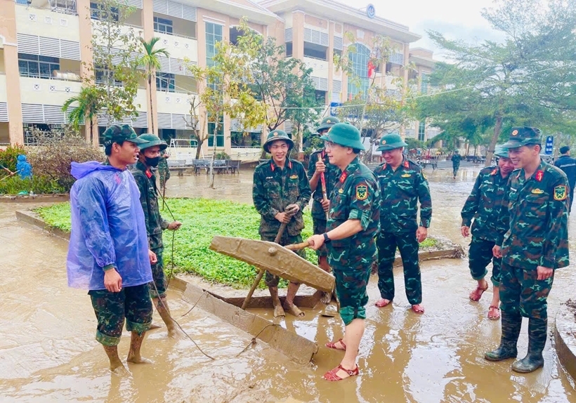 | Quân khu 5 triển khai đồng bộ nhiều biện pháp hỗ trợ nhân dân khắc phục hậu quả do trận lũ lịch sử gây ra vào tháng 11/2025. |