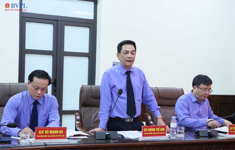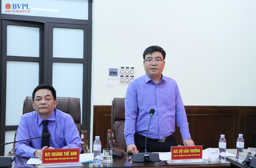 | Đồng chí Hoàng Thế Anh, Phó Viện trưởng Viện Khoa học Kiểm sát phát biểu tại buổi làm việc. |