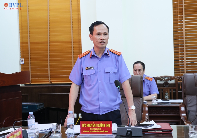 | Đồng chí Nguyễn Trường Thọ, Phó Viện trưởng VKSND tỉnh Bắc Ninh, Phó Trưởng ban Biên tập Trang tin điện tử VKSND tỉnh Bắc Ninh nêu những tồn tại, hạn chế về trang tin của đơn vị. |