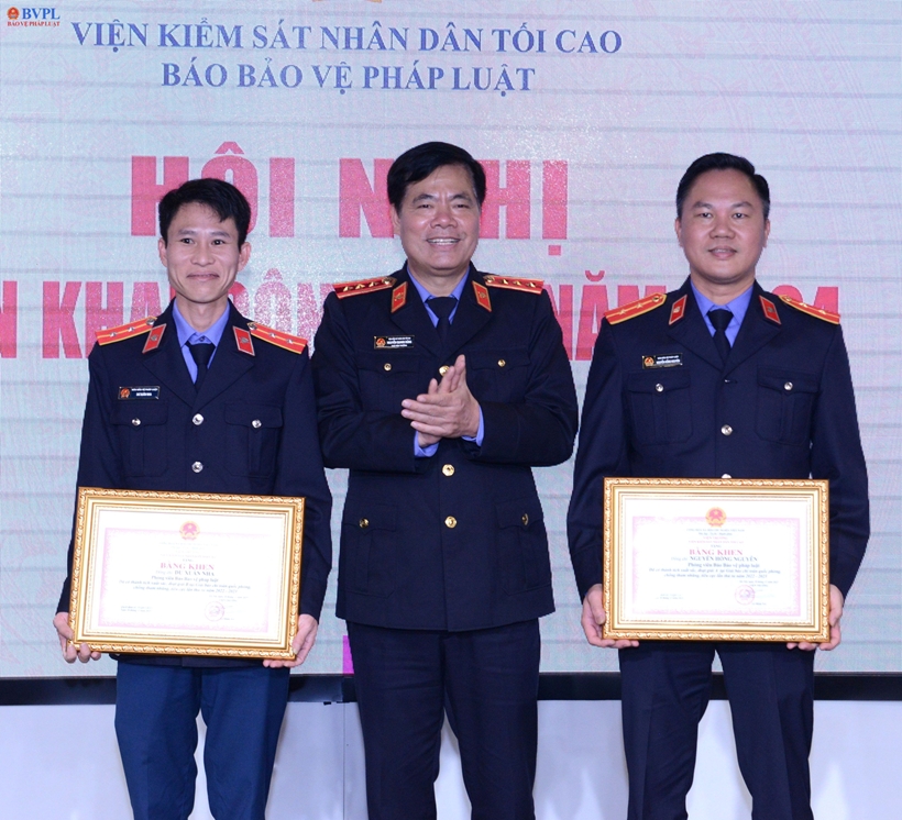 | Đồng chí Nguyễn Quang Dũng, Phó Viện trưởng VKSND tối cao trao Bằng khen của Viện trưởng VKSND tối cao tặng 3 cá nhân do hoàn thành xuất sắc nhiệm vụ hai năm liên tục 2022-2023. |