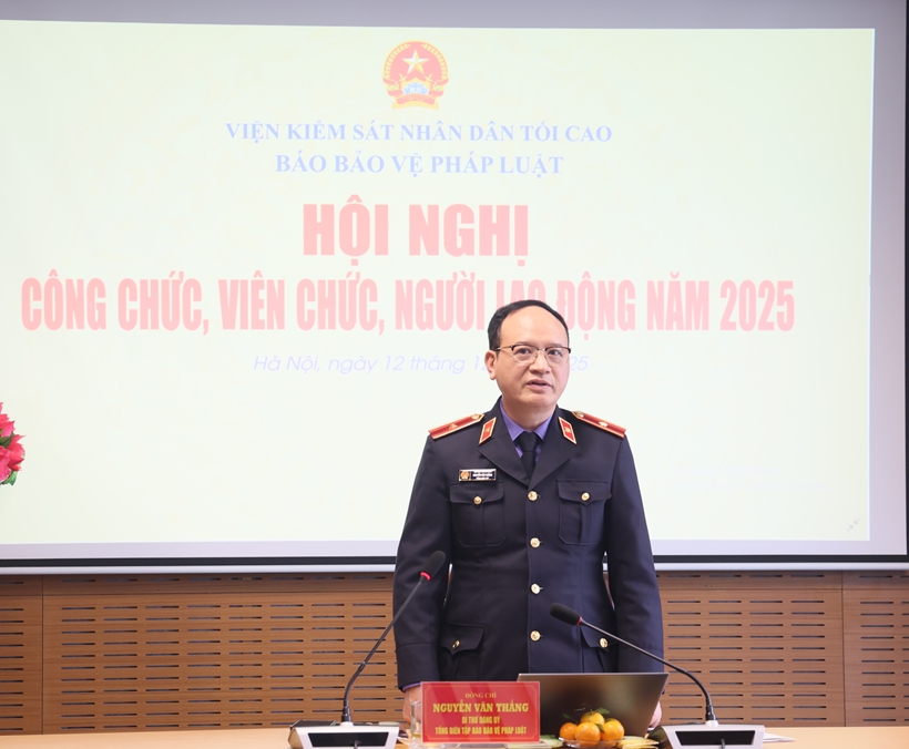 Phát biểu chỉ đạo Hội nghị, đồng chí Nguyễn Văn Thắng, Bí thư Đảng uỷ, Tổng Biên tập Báo Bảo vệ pháp luật biểu dương những cố gắng của công chức, viên chức, người lao động của Báo trong năm 2025, dù tình hình kinh tế chung rất khó khăn nhưng đã cố gắng hoàn thành tốt nhiệm vụ và có những đột phá. Tổng Biên tập Báo BVPL đánh giá cao các nội dung mà công chức, viên chức, người lao động thảo luận tại Hội nghị và đã giải đáp những thắc mắc của người lao động về chế độ chính sách trong thời gian qua.