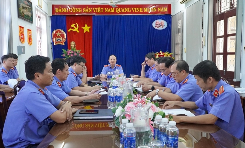 | Quang cảnh một buổi làm việc của Đoàn công tác Ban chỉ đạo công tác tuyên truyền ngành KSND nhằm khảo sát, kiểm tra, đánh giá công tác tuyên truyền tại VKSND cấp tỉnh. (Ảnh: Đại Lánh) |