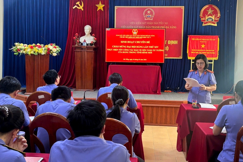 Thực hiện chỉ đạo của cấp trên về đẩy mạnh tuyên truyền Đại hội Đảng các cấp tiến tới Đại hội đại biểu toàn quốc lần thứ XIV của Đảng, Chi bộ VKSND khu vực 3, TP Đà Nẵng vừa tổ chức sinh hoạt chuyên đề với chủ đề “Bảo vệ nền tảng tư tưởng của Đảng trong tình hình mới – Hướng đến Đại hội Đảng toàn quốc lần thứ XIV”.