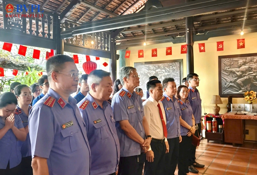 | Đảng viên, đoàn viên Chi bộ VKSND Khu vực 5 dâng hoa, thắp hương tưởng niệm Chủ tịch Hồ Chí Minh tại Bảo tàng Biệt động Sài Gòn - Gia Định. |