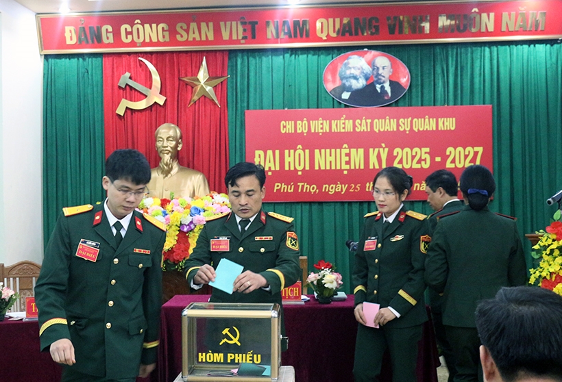 | Bỏ phiếu bầu Ban Chi uỷ Chi bộ VKSQS Quân khu nhiệm kỳ 2025-2027. |