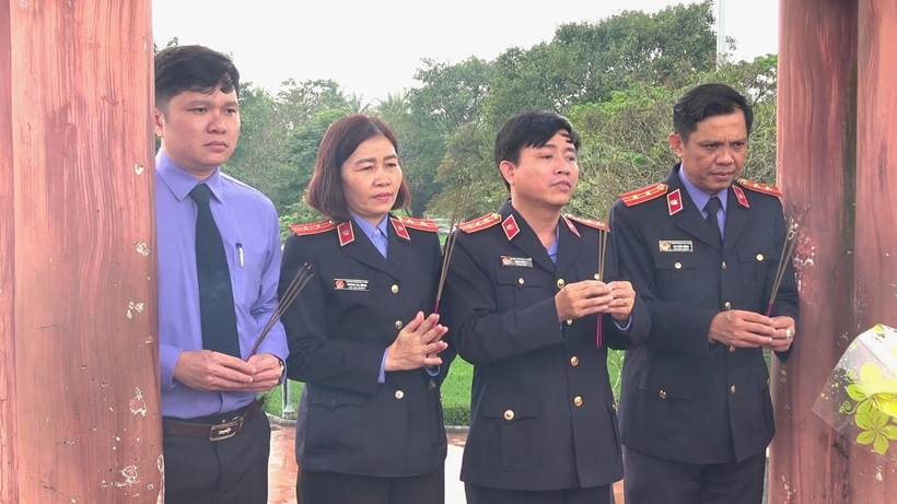 | Chi đoàn VKSND khu vực 10 dâng hương, bày tỏ lòng biết ơn sâu sắc đối với các anh hùng liệt sĩ. |