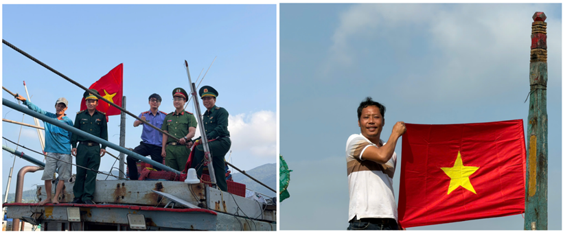 Bên cạnh hoạt động trao cờ, các đơn vị đã tổ chức tuyên truyền, phổ biến các quy định của pháp luật liên quan đến khai thác thủy sản, đặc biệt là các nội dung về chống khai thác hải sản bất hợp pháp, không báo cáo và không theo quy định (IUU). Ngư dân được hướng dẫn nâng cao ý thức chấp hành pháp luật khi hoạt động trên biển, không xâm phạm vùng biển nước ngoài, thực hiện đầy đủ việc đăng ký, đăng kiểm, lắp đặt thiết bị giám sát hành trình, ghi nhật ký khai thác theo quy định.