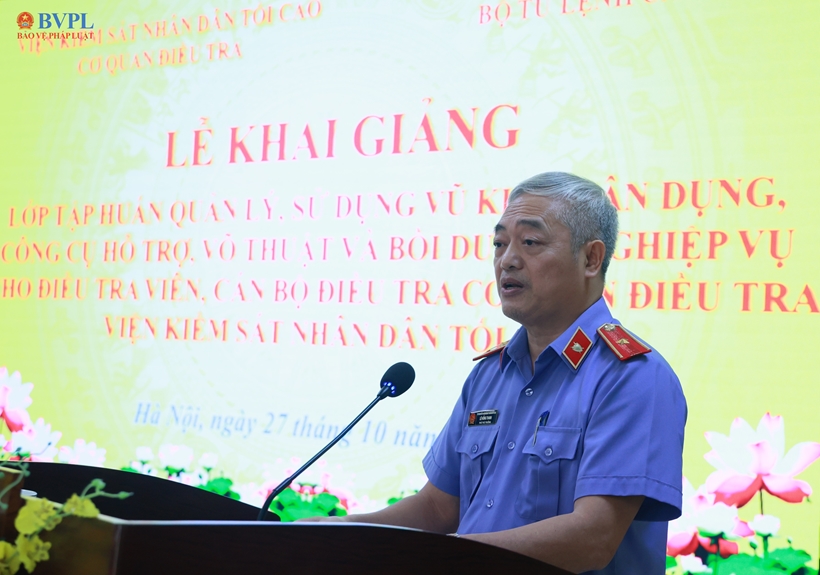 Phát biểu khai mạc lớp tập huấn, đồng chí Lê Hồng Thanh, Phó Thủ trưởng Cơ quan điều tra VKSND tối cao nhấn mạnh, thực hiện Kế hoạch số 2271/KH-VKSTC-C1 ngày 05/8/2025, lớp tập huấn năm nay được tổ chức nhằm nâng cao năng lực toàn diện về chuyên môn, nghiệp vụ, kỹ năng chiến thuật, sử dụng vũ khí quân dụng, công cụ hỗ trợ và võ thuật cho đội ngũ Điều tra viên, Cán bộ điều tra Cơ quan điều tra VKSND tối cao.
