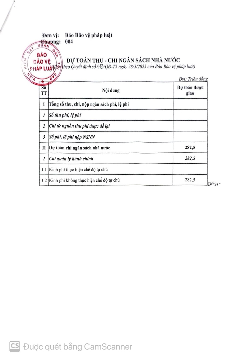 Thực hiện quy định về công khai tài chính theo Thông tư số 61/2017/TT-BTC ngày 15/6/2017. Báo Bảo vệ pháp luật đăng công khai điều chỉnh dự toán chi ngân sách Nhà nước năm 2025 như sau: