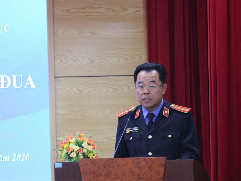 | Đồng chí Đinh Quốc Hùng, Viện trưởng VKSND khu vực 3, Cụm trưởng Cụm thi đua phát động phong trào thi đua năm 2026. |