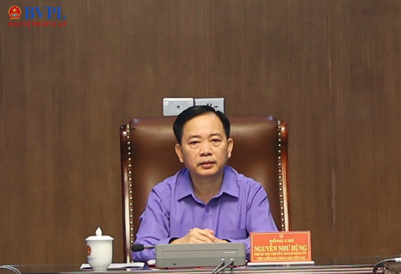 | Đồng chí Nguyễn Như Hùng, Phó Bí thư chuyên trách Đảng ủy VKSND tối cao dự và chủ trì Hội nghị tại điểm cầu VKSND tối cao |