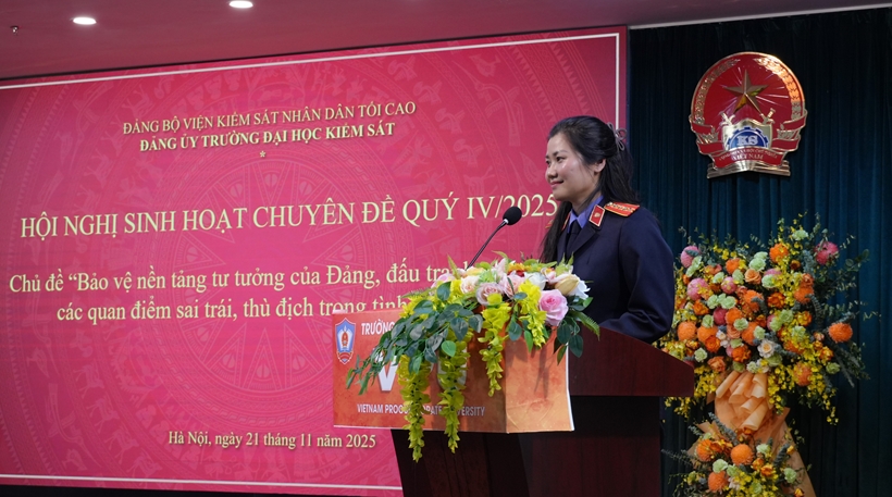 Phó Bí thư Đảng ủy, Phó Hiệu trưởng Nhà trường, Bùi Thị Hạnh khẳng định, việc bảo vệ nền tảng tư tưởng của Đảng là nhiệm vụ lâu dài, thường xuyên, yêu cầu toàn Đảng bộ tiếp tục phát huy tinh thần đoàn kết, trách nhiệm, góp phần xây dựng Nhà trường và ngành Kiểm sát nhân dân ngày càng vững mạnh./.